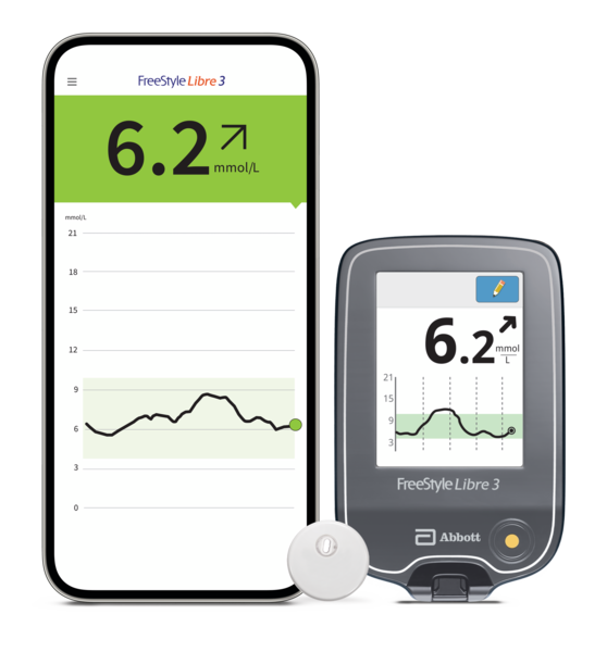 The FreeStyle Libre 3 is a continuous glucose monitor (CGM) that provides real-time blood sugar readings automatically. A small, discreet sensor worn on the back of your arm sends glucose data directly to your phone—no need to scan—helping you stay on top of your levels with ease and confidence.
